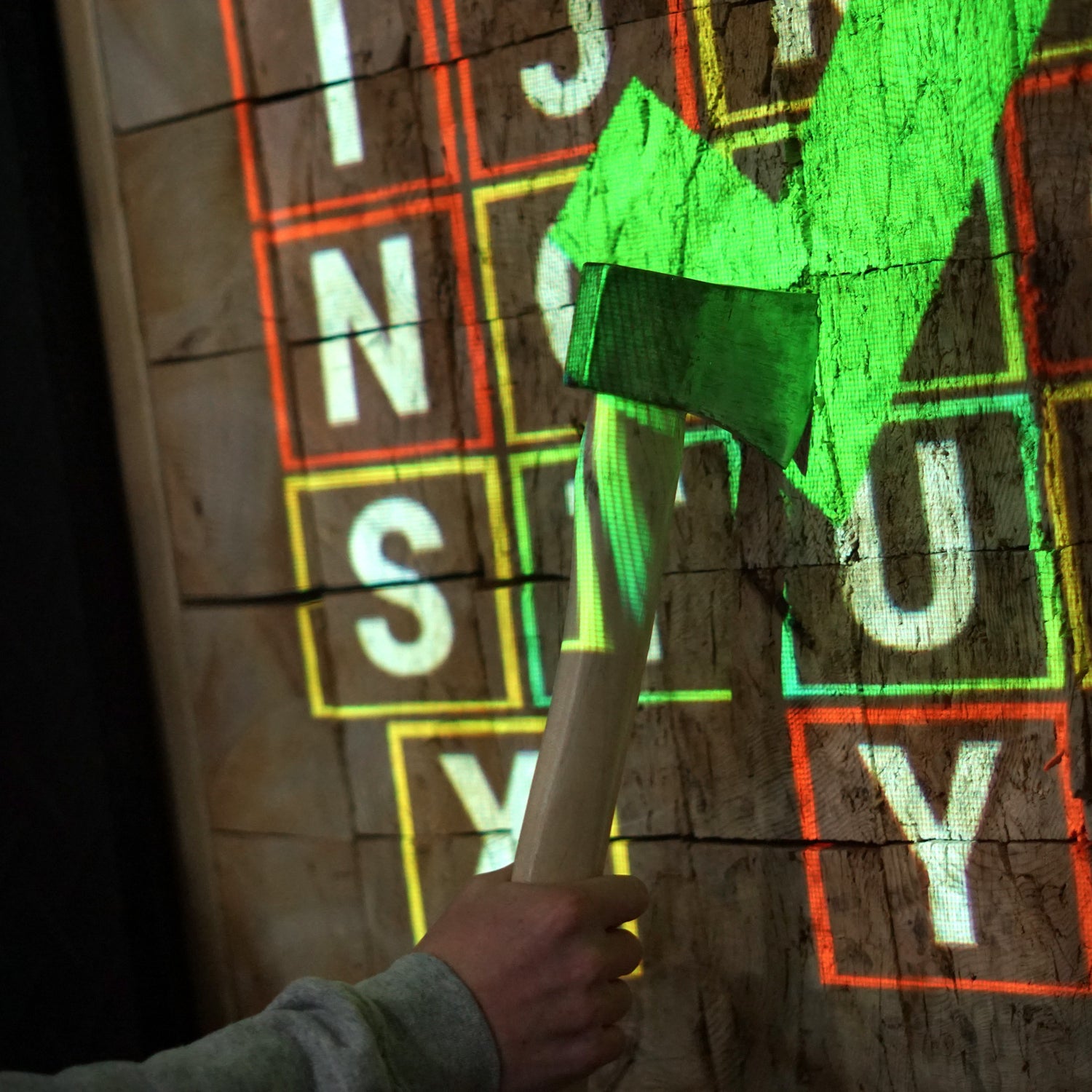 Each axe throwing lane is equipped with a projector and computer system, making scoring easy and allowing you to play a variety of games or throw at different targets!