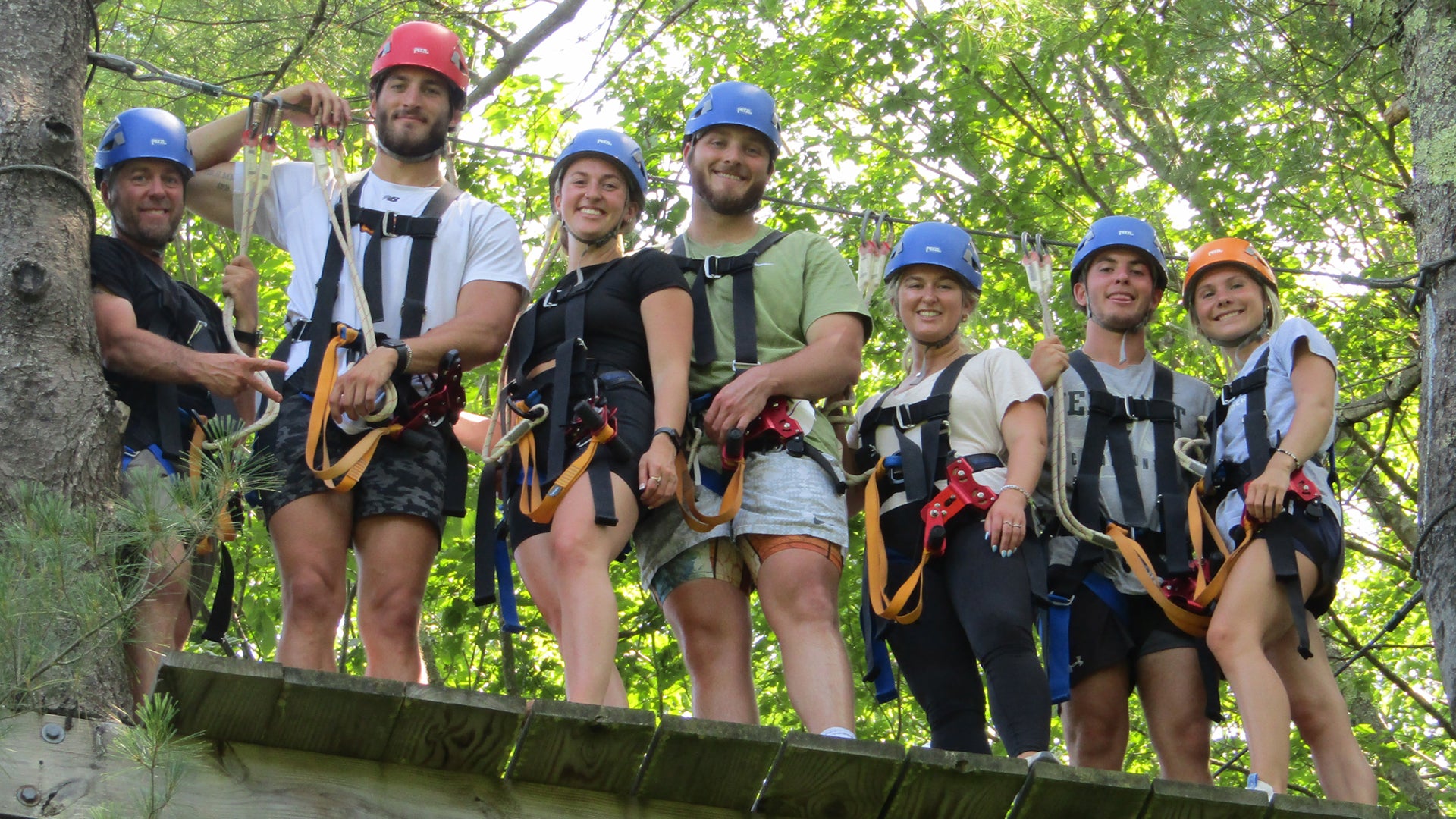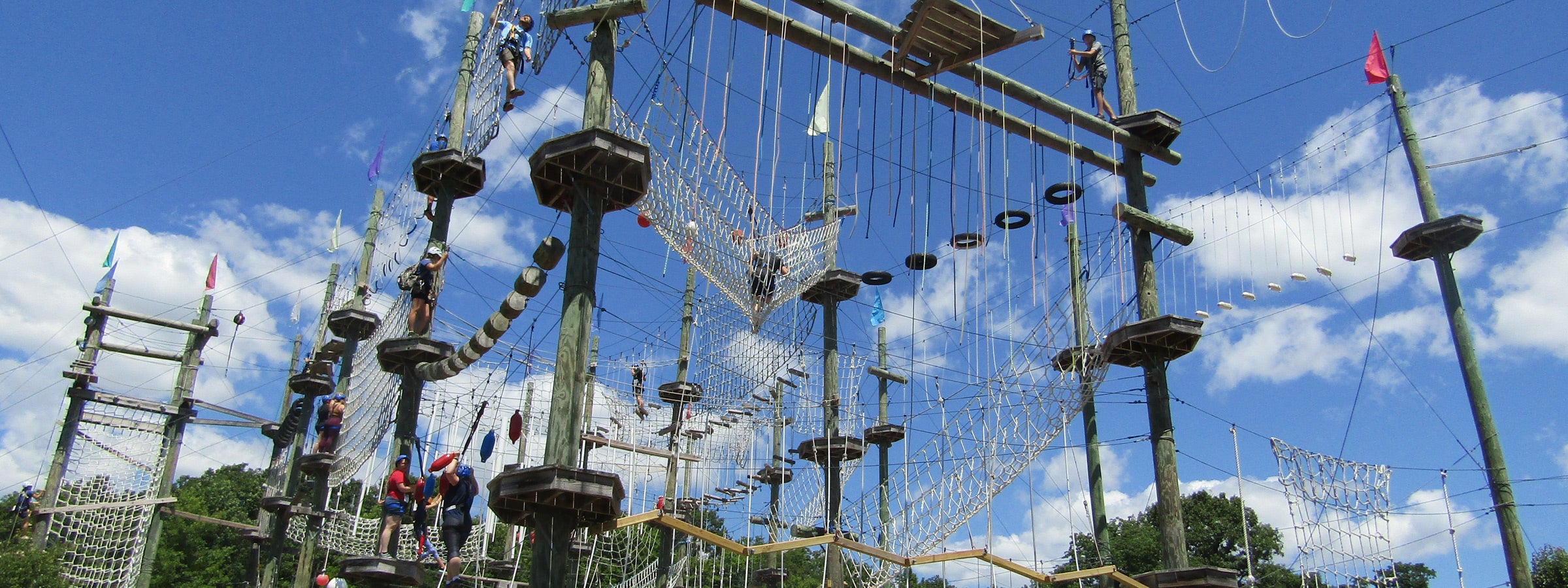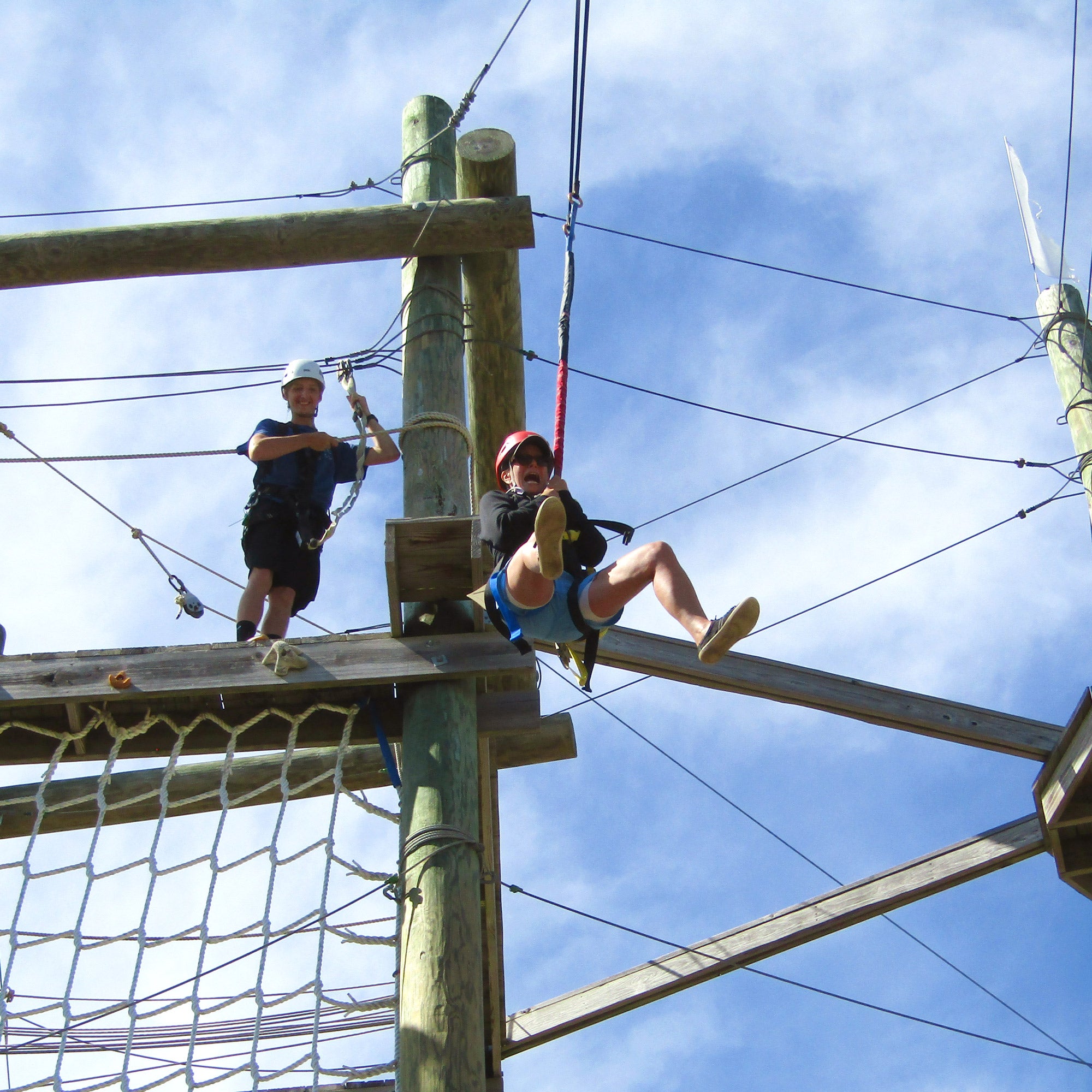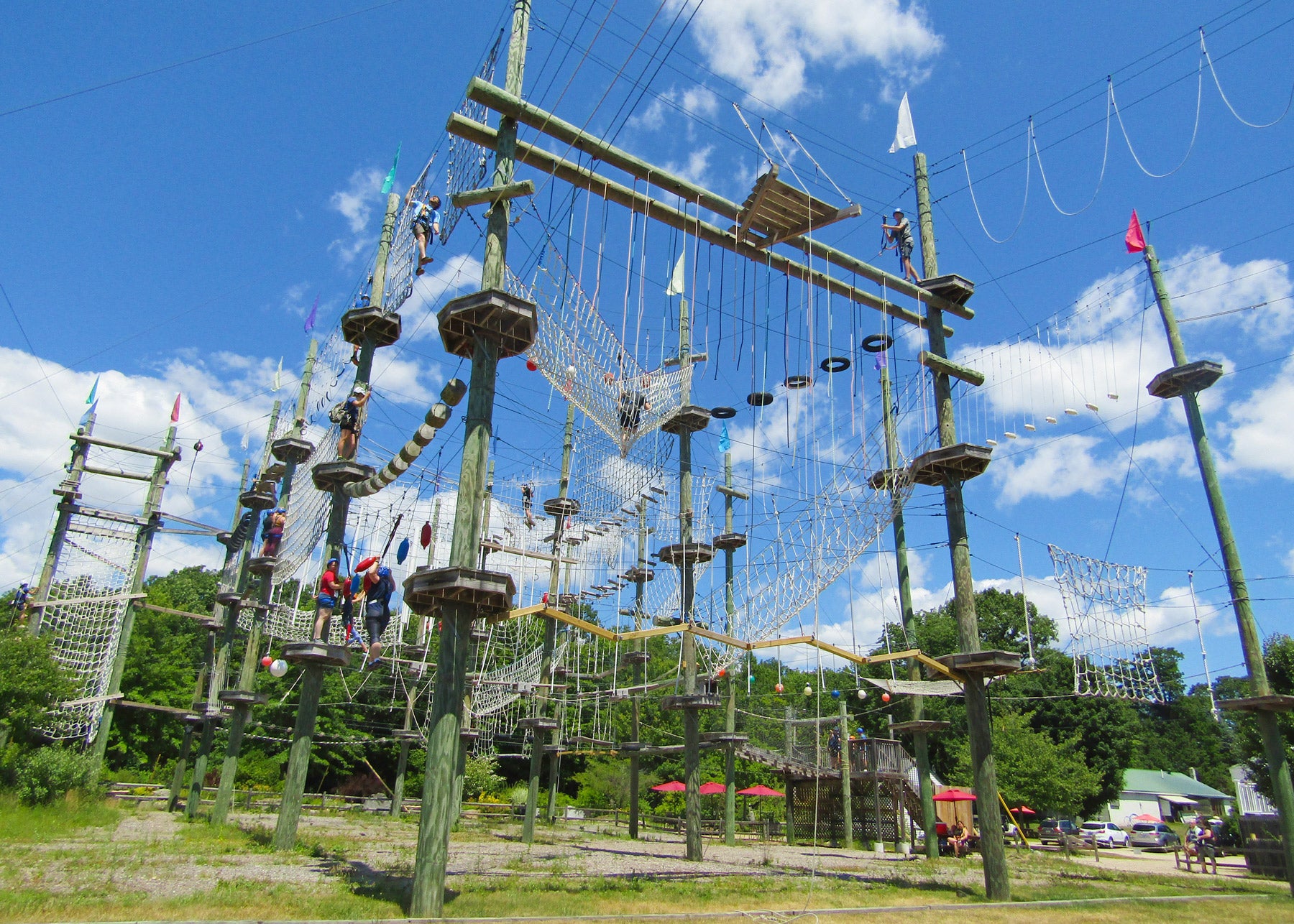 Our Aerial Adventure Ropes Course has 65+ elements, including cat walks, swinging tires, burma bridges, our Super Swing, and more. So much fun, you'll want to come back again and again!